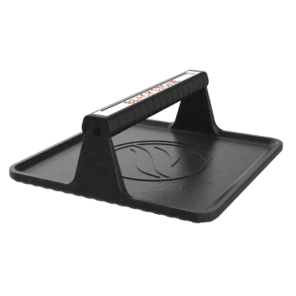 The Blackstone XL Griddle Press is the ultimate cooking tool. Cook meat evenly, add grill marks, prevent grease splatter, press sandwiches and more with the Blackstone Culinary XL Griddle Press. Simply designed cast iron plate with a heat resistant plastic handle is perfectly weighted for the job. It’s an essential tool for any griddle master.