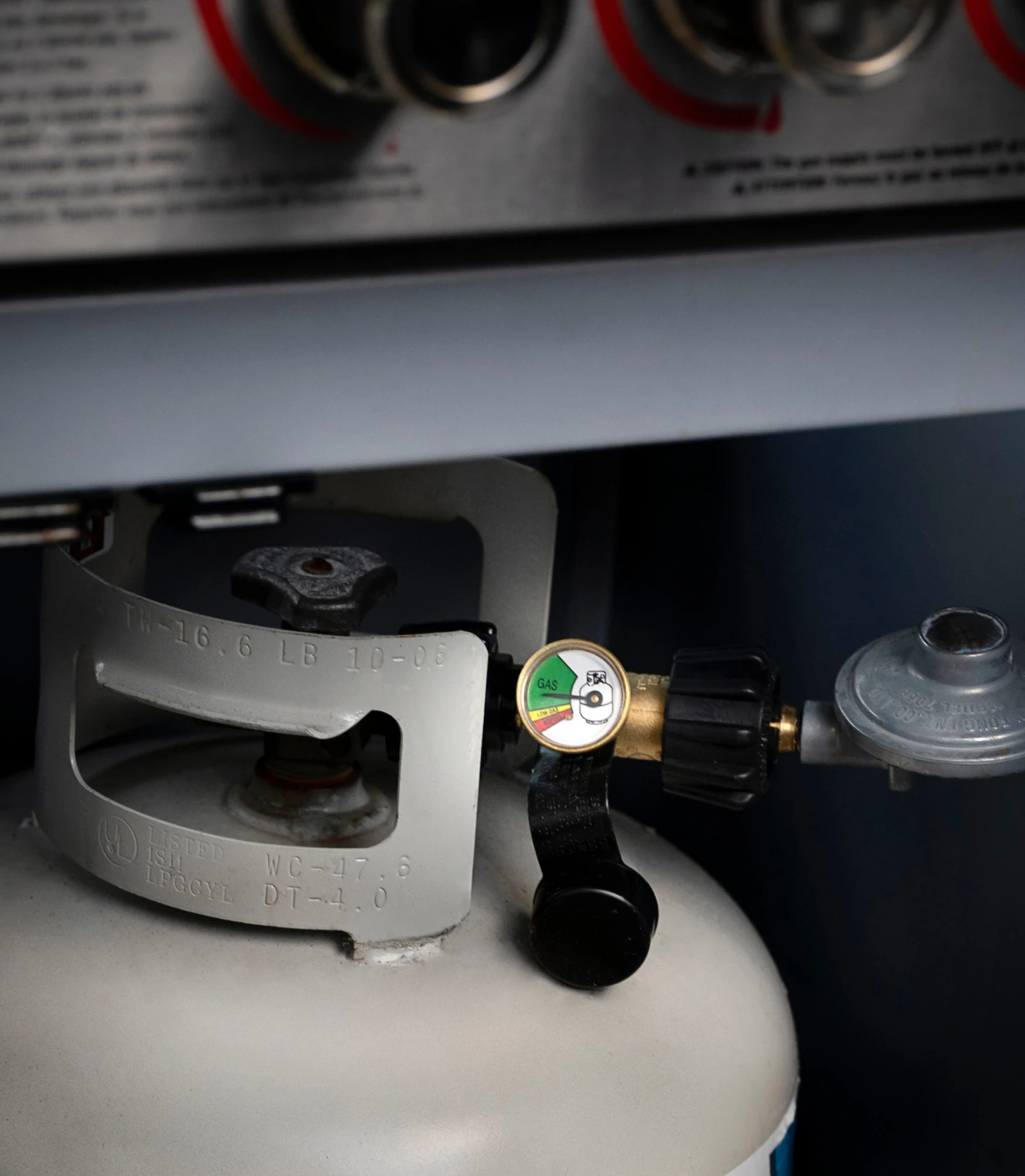 Never guess how much you’ve got left in the tank again. This propane tank gauge by Blue Rhino® can be used with grills, boats, RVs and all propane appliances with a type 1 connection. The emergency flow control, automatic leak detector and color analog gauge make it safe and easy to use and read.