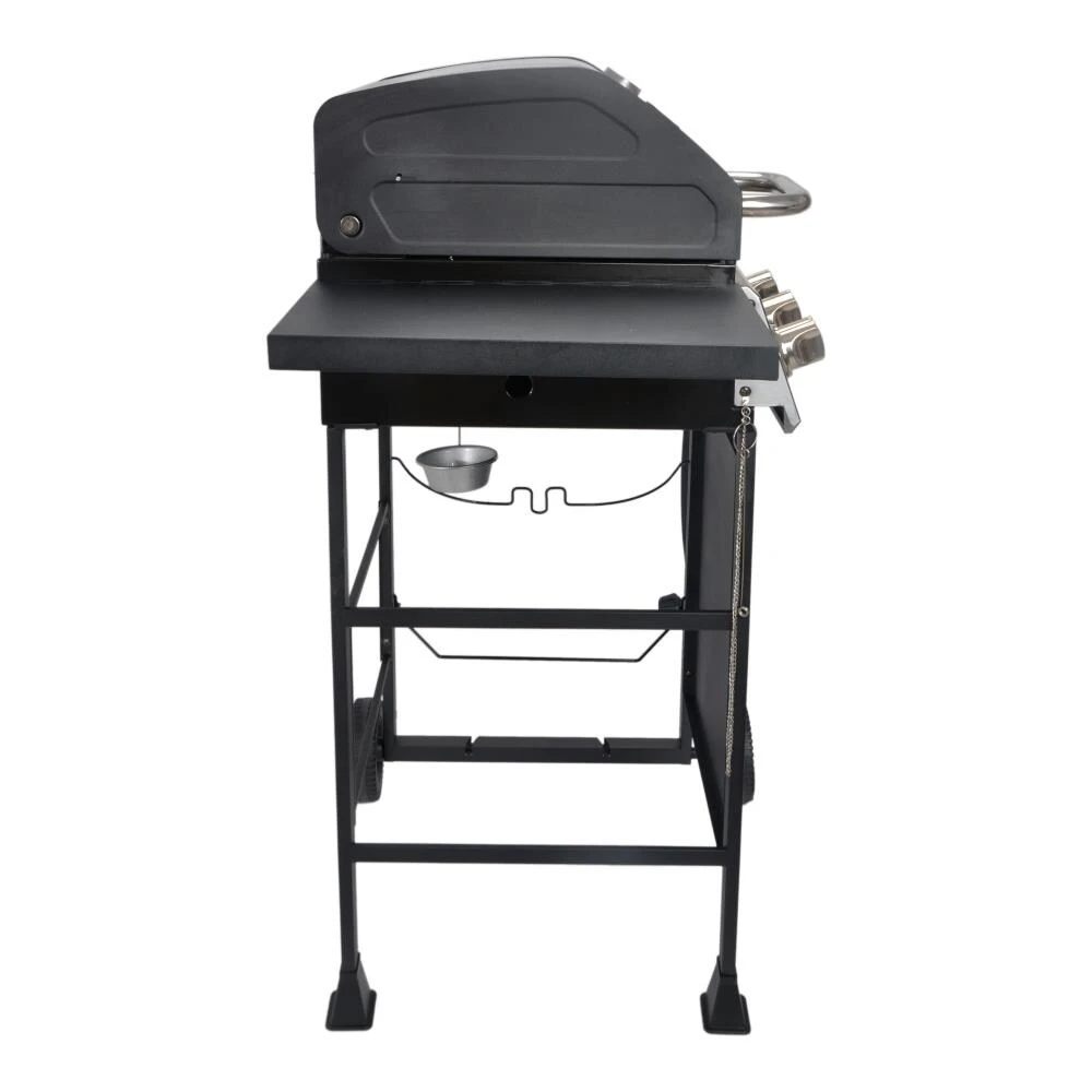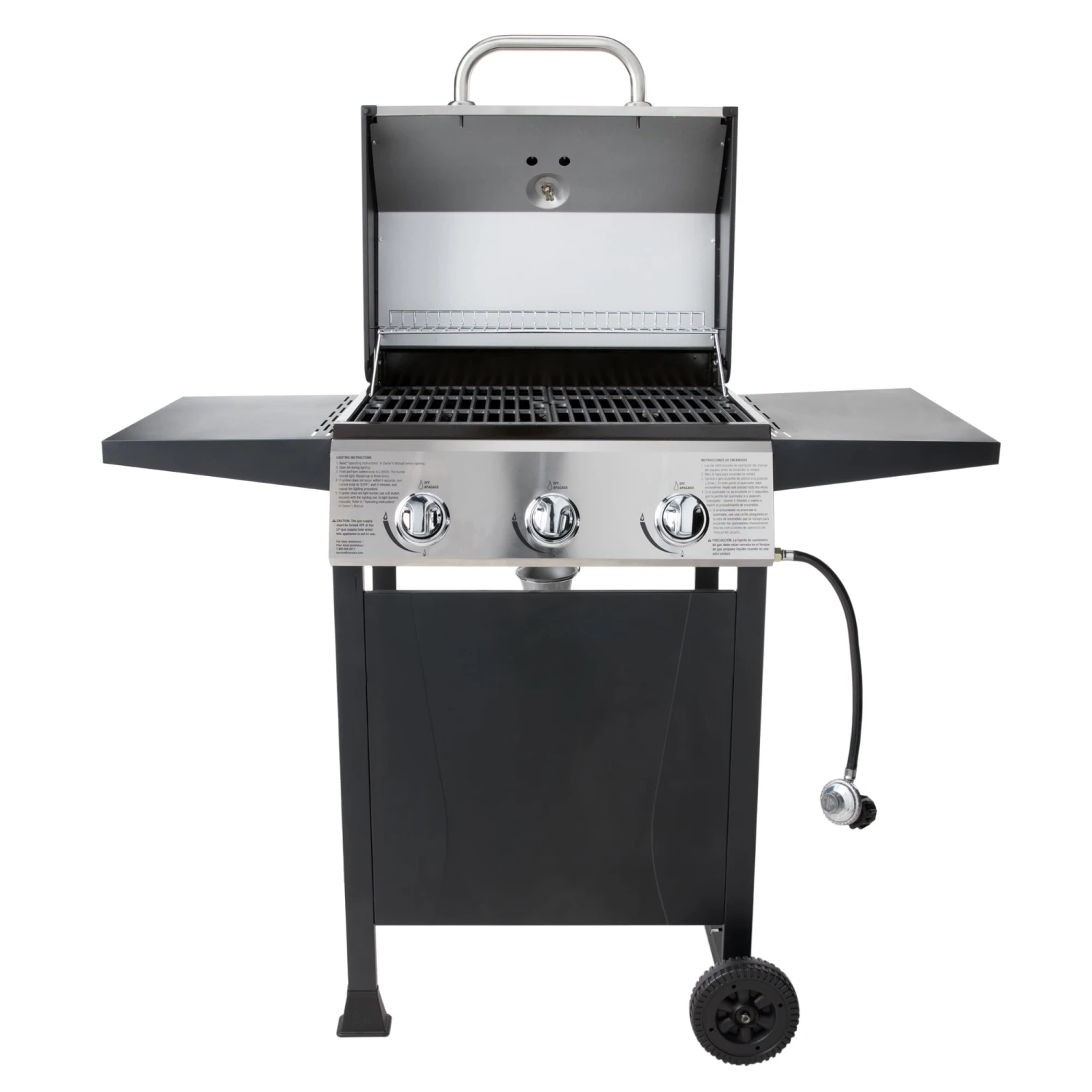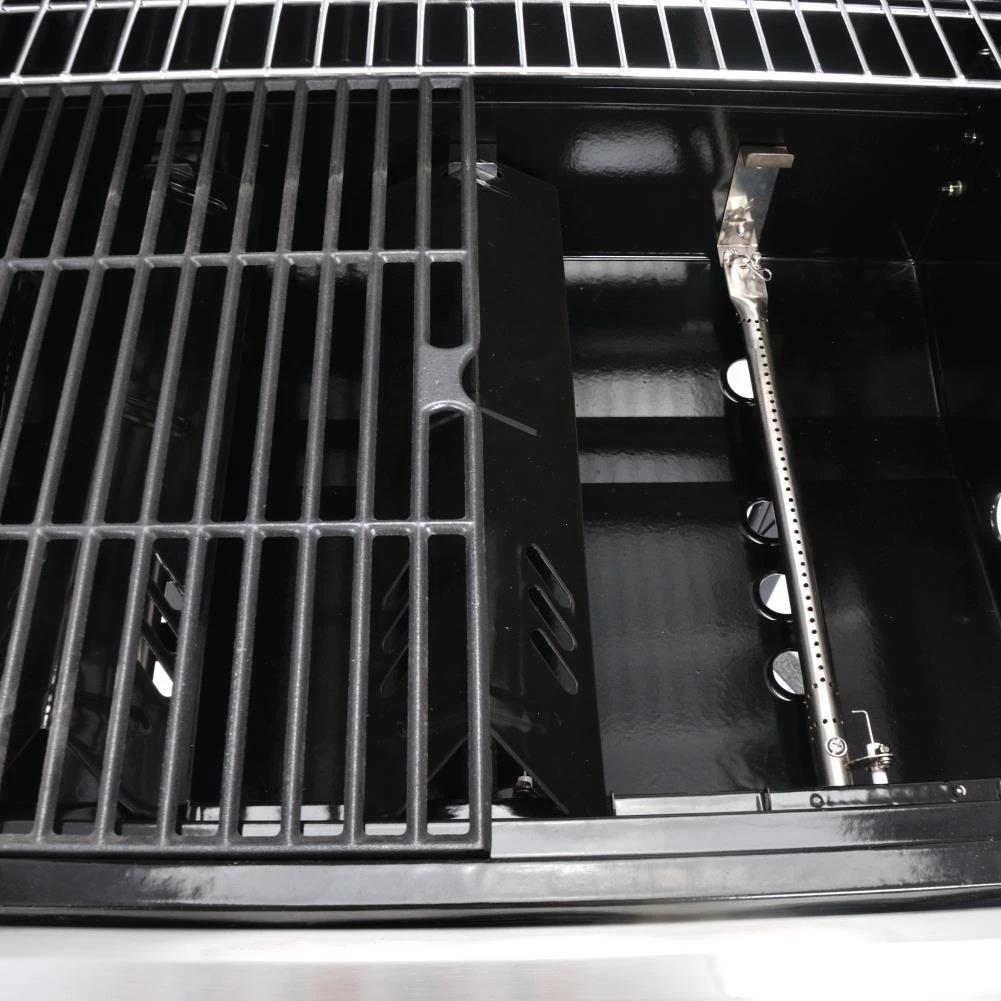 - 27000-BTU stainless steel burners with easy push and turn ignition