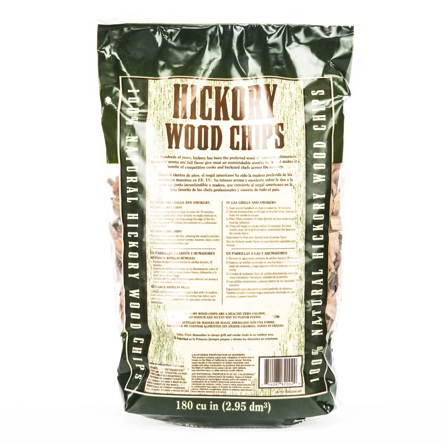 For hundreds of years hickory has been the preferred wood of American pit masters. Its hearty aroma and full flavor give meat an unmistakable woodsy taste that makes it a favorite of competition cooks and backyard chefs across the country. Cowboy hickory wood chips are a healthy, zero calorie, no-sodium and nonfat way to flavor foods. Use in charcoal or gas grills.