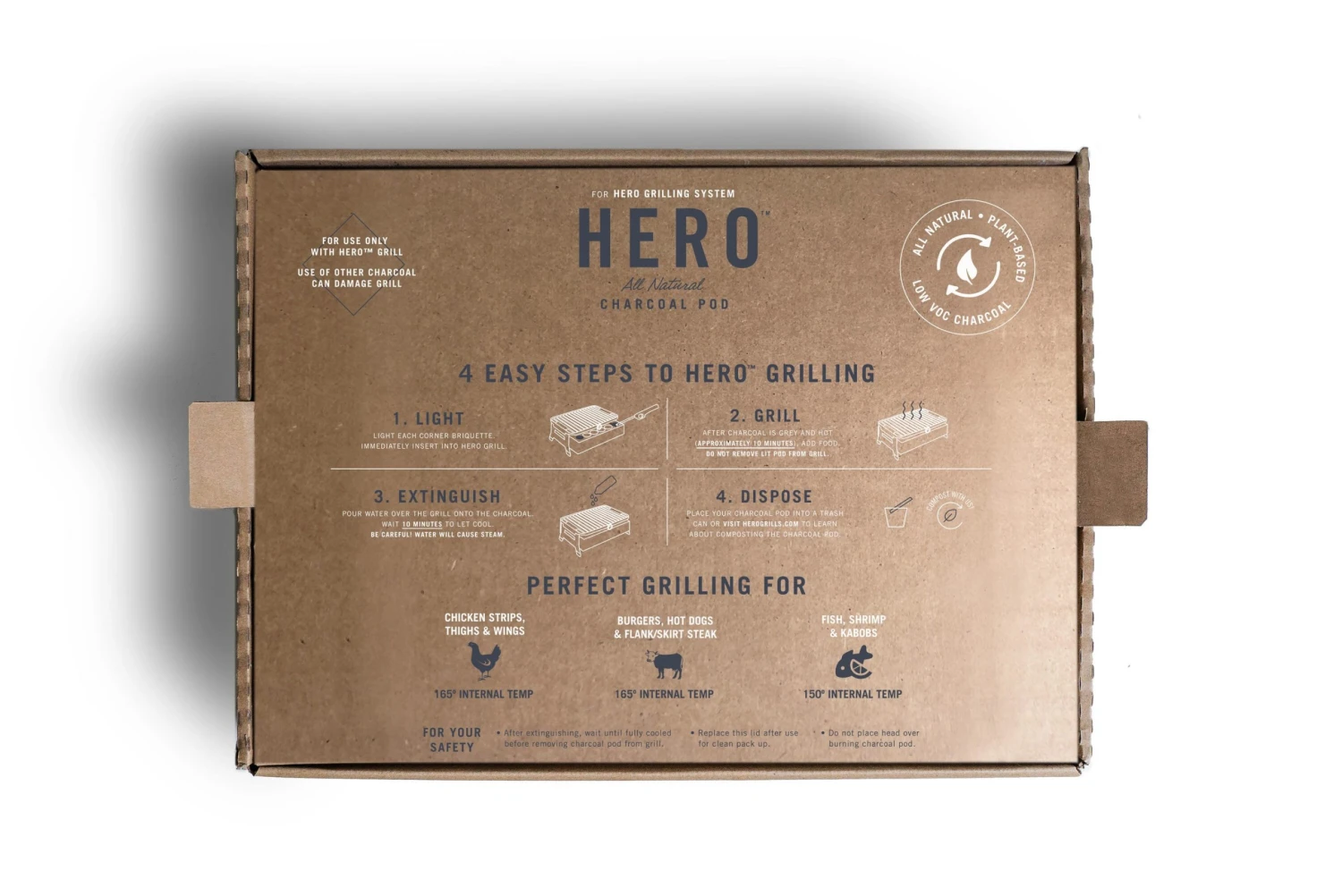 - Hero charcoal pods are a safe, portable charcoal option for grilling great food with friends and family
