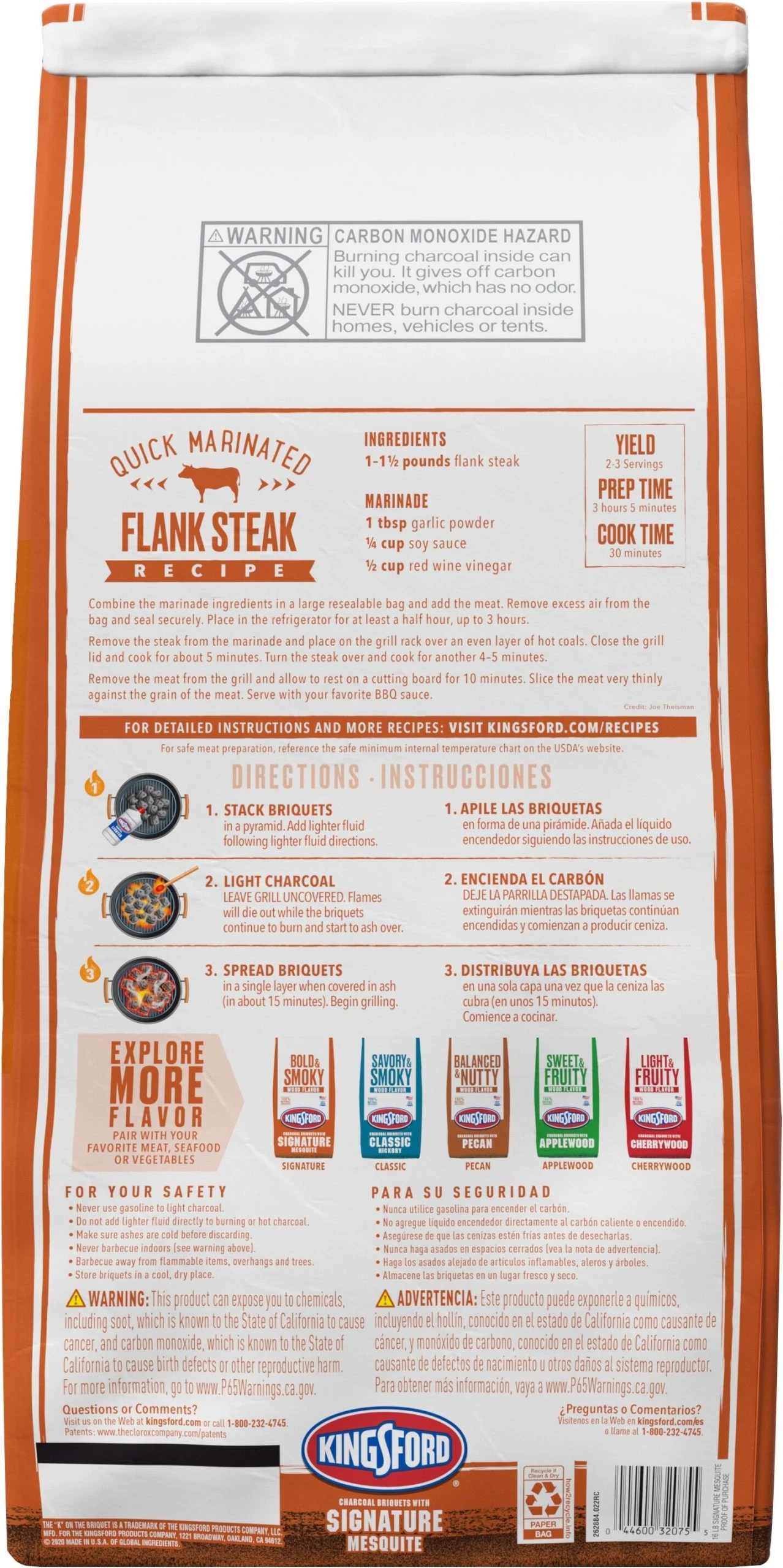 Bold and smoky, Kingsford® Original Charcoal Briquettes with Mesquite enhance the flavor of any food. Made with 100% natural ingredients and Mesquite Wood, this grilling charcoal gives you the best in BBQ smoke flavor. The infused charcoal briquettes give an authentic smoky flavor to each bite and will bring joy to your taste buds. The mesquite flavor pairs best with beef and vegetables, but can be used for all your grilling occasions. On the back of the pack, you’ll find an easy recipe for quick marinated flank steak that perfectly complements the mesquite flavor. The Sure Fire Grooves have edges for quick, easy lighting. Light a match to the coals and be ready to cook on the grill in about 15 minutes, ready faster than other brands. Easy to use, just add them to the grill and the smoke does the work. Light up your tailgate party or backyard barbeque with Kingsford® Original Mesquite Charcoal Briquettes. Compared to nationally available conventional charcoal in the U.S.A.