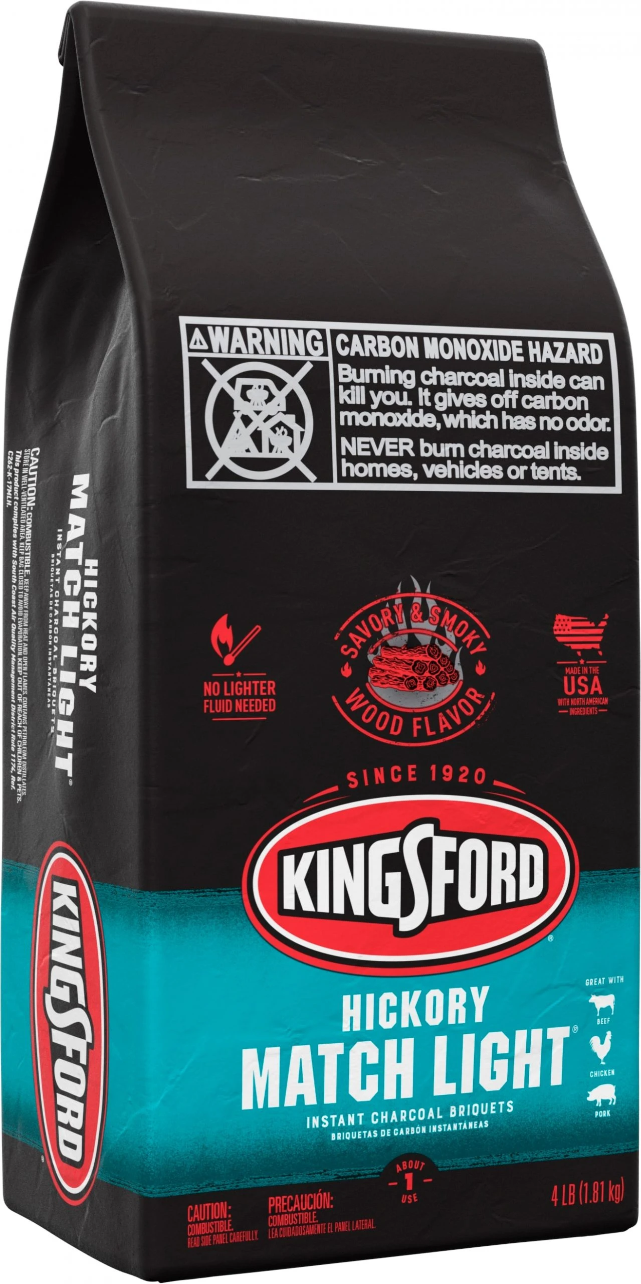 - NO LIGHTER FLUID: Made with high quality ingredients and real wood, just light a match to the coals – no lighter fluid needed -Each 4 pound bag of Match Light Hickory Instant Charcoal generates about 1 use