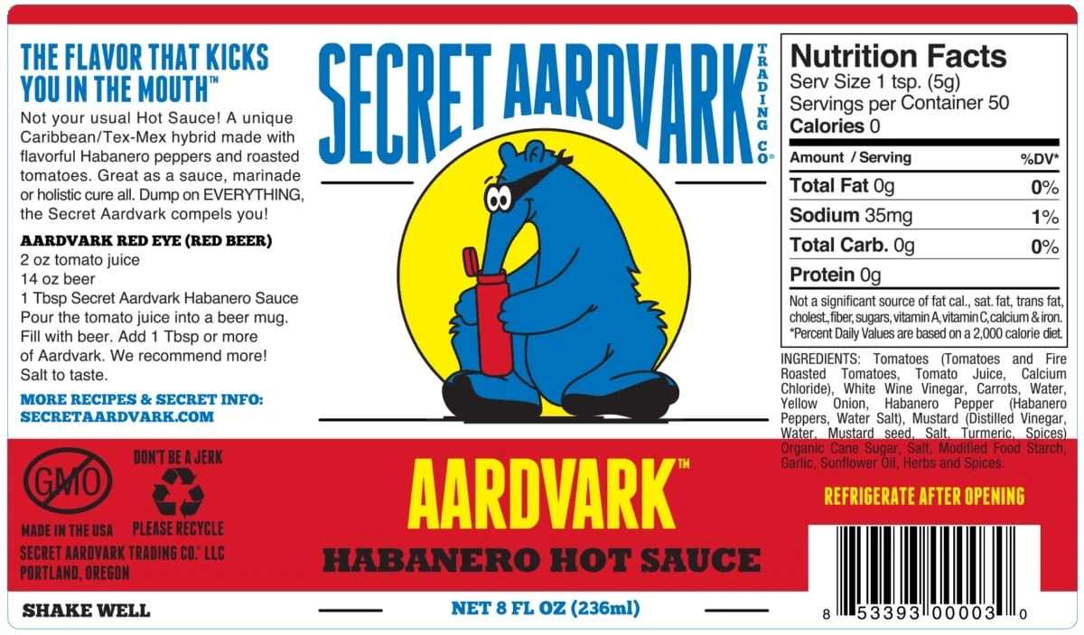 This is not your usual hot sauce! We have created a unique Caribbean Tex-Mex hybrid made with flavorful habanero peppers and roasted tomatoes that’s great as a sauce, marinade or holistic cure-all. “Dump on everything,” the secret aardvark compels you!